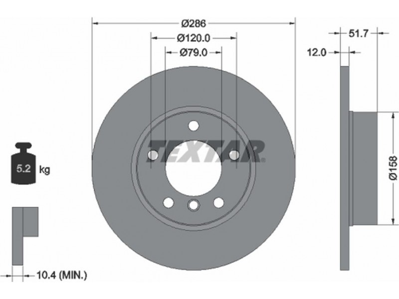 Criteries : Βάρος [kg] 5,2, Διάμετρος κέντρωσης [mm] 79, Διάμετρος κύκλου οπής [mm] 120, Διάμετρος οπής μπουλονιού τροχού [mm] 14,7, Ελάχιστο πάχος [mm] 10,4, Εξωτερική διάμετρος [mm] 286, Επιφάνεια με επίστρωση, Εσωτερική διάμετρος [mm] 148, μήκος συσκευασίας [cm] 30,8, Πατρόν τρύπας/αριθμός τρυπών 05/06, Πάχος δισκόπλακας [mm] 12, πλάτος συσκευασίας [cm] 30,8, Συμπληρωματικό προϊόν/ πληροφορίες 2 χωρίς μπουλόνια στερέωσης τροχού, Συμπληρωματικό προϊόν/ πληροφορίες 2 χωρίς πλήμνη, Συμπληρωματικό προϊόν/ πληροφορίες 2 χωρίς ρουλεμάν τροχού, Τύπος δισκόφρενων πλήρες, Υψος [mm] 51,7, ύψος συσκευασίας [cm] 12,7
