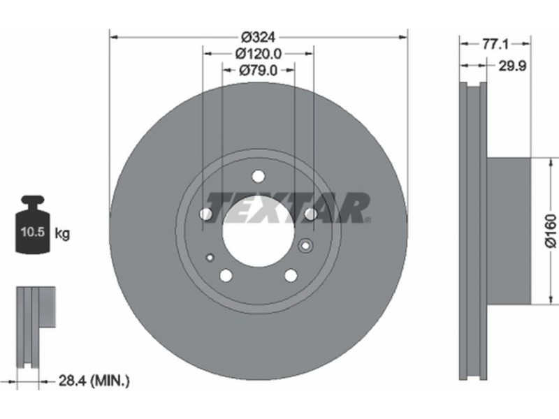Criteries : Βάρος [kg] 10,5, Διάμετρος κέντρωσης [mm] 79, Διάμετρος κύκλου οπής [mm] 120, Διάμετρος οπής μπουλονιού τροχού [mm] 14,6, Ελάχιστο πάχος [mm] 28,4, Εξωτερική διάμετρος [mm] 324, Εσωτερική διάμετρος [mm] 148,8, μήκος συσκευασίας [cm] 34,3, Πατρόν τρύπας/αριθμός τρυπών 05/07, Πάχος δισκόπλακας [mm] 29,9, πλάτος συσκευασίας [cm] 34,3, Συμπληρωματικό προϊόν/ πληροφορίες 2 χωρίς μπουλόνια στερέωσης τροχού, Συμπληρωματικό προϊόν/ πληροφορίες 2 χωρίς πλήμνη, Συμπληρωματικό προϊόν/ πληροφορίες 2 χωρίς ρουλεμάν τροχού, Τύπος δισκόφρενων εσωτερικά αεριζόμενο, Υψος [mm] 77,1, ύψος συσκευασίας [cm] 11,5