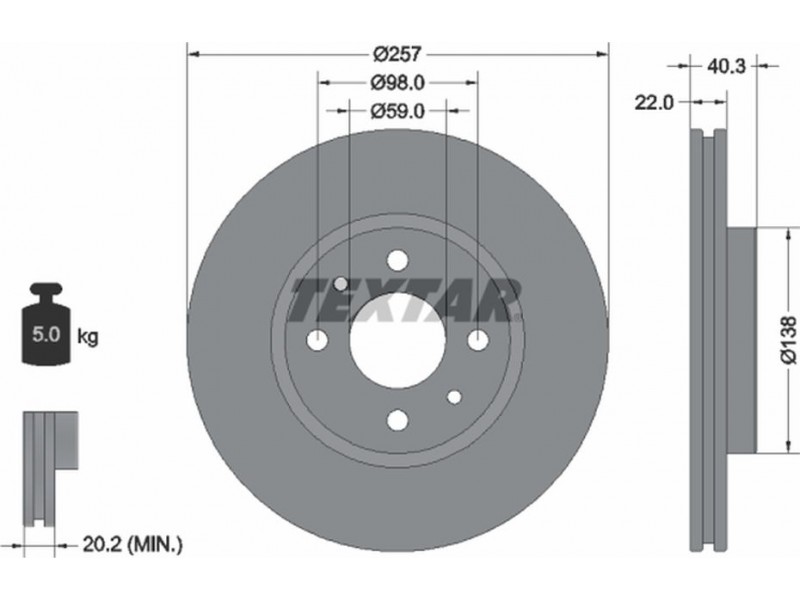 TEXTAR ΔΙΣΚΟΠΛΑΚΕΣ FIAT TEXTAR 92069603 - Δισκόπλακα