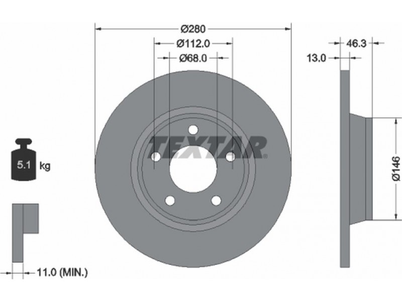 Criteries : Βάρος [kg] 5,1, Διάμετρος κέντρωσης [mm] 68, Διάμετρος κύκλου οπής [mm] 112, Διάμετρος οπής μπουλονιού τροχού [mm] 15,3, Ελάχιστο πάχος [mm] 11, Εξωτερική διάμετρος [mm] 280, Επεξεργασία υψηλής ανθράκωσης, Επιφάνεια με επίστρωση, Εσωτερική διάμετρος [mm] 159, μήκος συσκευασίας [cm] 30,8, Πατρόν τρύπας/αριθμός τρυπών 05/05, Πάχος δισκόπλακας [mm] 13, πλάτος συσκευασίας [cm] 30,8, Συμπληρωματικό προϊόν/ πληροφορίες 2 χωρίς μπουλόνια στερέωσης τροχού, Συμπληρωματικό προϊόν/ πληροφορίες 2 χωρίς πλήμνη, Συμπληρωματικό προϊόν/ πληροφορίες 2 χωρίς ρουλεμάν τροχού, Τύπος δισκόφρενων πλήρες, Υψος [mm] 46,3, ύψος συσκευασίας [cm] 12,7