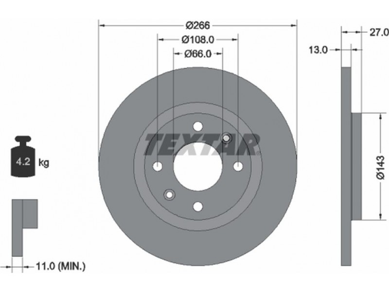 Criteries : Βάρος [kg] 4,2, Διάμετρος κέντρωσης [mm] 66, Διάμετρος κύκλου οπής [mm] 108, Διάμετρος οπής μπουλονιού τροχού [mm] 13, Ελάχιστο πάχος [mm] 11, Εξωτερική διάμετρος [mm] 266, Επιφάνεια με επίστρωση, Εσωτερική διάμετρος [mm] 133,2, μήκος συσκευασίας [cm] 27,8, Πατρόν τρύπας/αριθμός τρυπών 04/06, Πάχος δισκόπλακας [mm] 13, πλάτος συσκευασίας [cm] 27,8, Συμπληρωματικό προϊόν/ πληροφορίες 2 χωρίς μπουλόνια στερέωσης τροχού, Συμπληρωματικό προϊόν/ πληροφορίες 2 χωρίς πλήμνη, Συμπληρωματικό προϊόν/ πληροφορίες 2 χωρίς ρουλεμάν τροχού, Τύπος δισκόφρενων πλήρες, Υψος [mm] 27, ύψος συσκευασίας [cm] 8,4