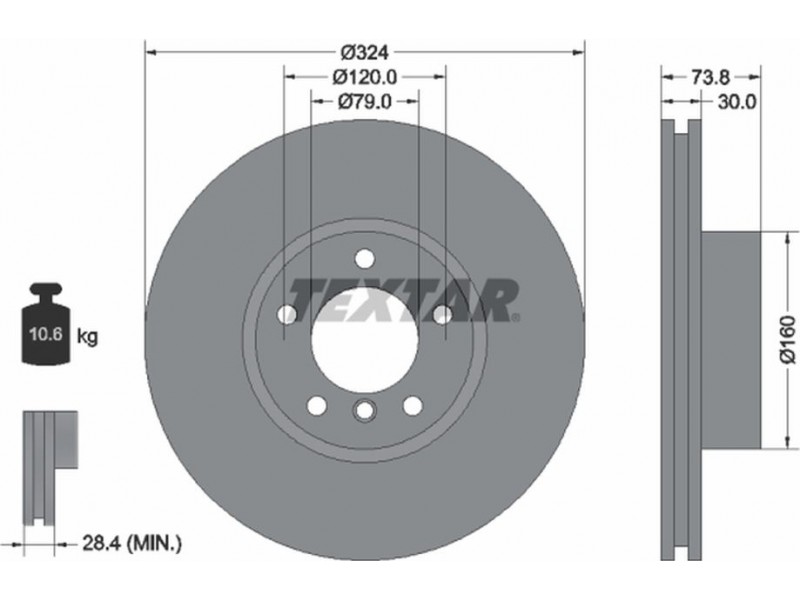 Criteries : Βάρος [kg] 10,6, Διάμετρος κέντρωσης [mm] 79, Διάμετρος κύκλου οπής [mm] 120, Διάμετρος οπής μπουλονιού τροχού [mm] 14,7, Ελάχιστο πάχος [mm] 28,4, Εξωτερική διάμετρος [mm] 324, Επεξεργασία υψηλής ανθράκωσης, Επιφάνεια με επίστρωση, Εσωτερική διάμετρος [mm] 148,8, μήκος συσκευασίας [cm] 35,8, Πατρόν τρύπας/αριθμός τρυπών 05/06, Πάχος δισκόπλακας [mm] 30, πλάτος συσκευασίας [cm] 35,8, Συμπληρωματικό προϊόν/ πληροφορίες 2 χωρίς μπουλόνια στερέωσης τροχού, Συμπληρωματικό προϊόν/ πληροφορίες 2 χωρίς πλήμνη, Συμπληρωματικό προϊόν/ πληροφορίες 2 χωρίς ρουλεμάν τροχού, Τύπος δισκόφρενων εσωτερικά αεριζόμενο, Υψος [mm] 73,8, ύψος συσκευασίας [cm] 10,5