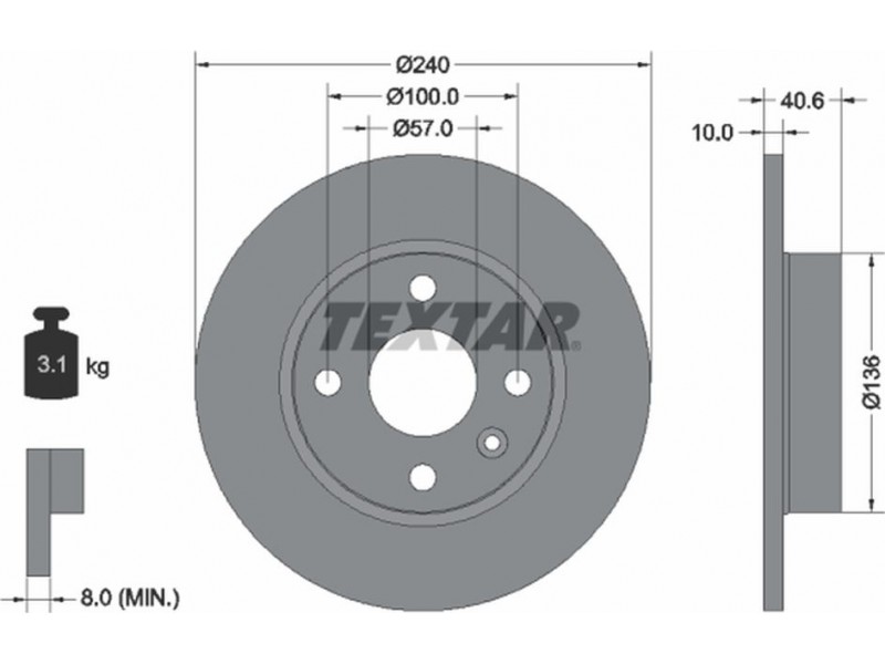 Criteries : Βάρος [kg] 3,1, Διάμετρος κέντρωσης [mm] 57, Διάμετρος κύκλου οπής [mm] 100, Διάμετρος οπής μπουλονιού τροχού [mm] 14,2, Ελάχιστο πάχος [mm] 8, Εξωτερική διάμετρος [mm] 240, Επιφάνεια με επίστρωση, Εσωτερική διάμετρος [mm] 126,1, μήκος συσκευασίας [cm] 24,8, Πατρόν τρύπας/αριθμός τρυπών 04/05, Πάχος δισκόπλακας [mm] 10, πλάτος συσκευασίας [cm] 24,8, Συμπληρωματικό προϊόν/ πληροφορίες 2 χωρίς μπουλόνια στερέωσης τροχού, Συμπληρωματικό προϊόν/ πληροφορίες 2 χωρίς πλήμνη, Συμπληρωματικό προϊόν/ πληροφορίες 2 χωρίς ρουλεμάν τροχού, Τύπος δισκόφρενων πλήρες, Υψος [mm] 40,6, ύψος συσκευασίας [cm] 10,5
