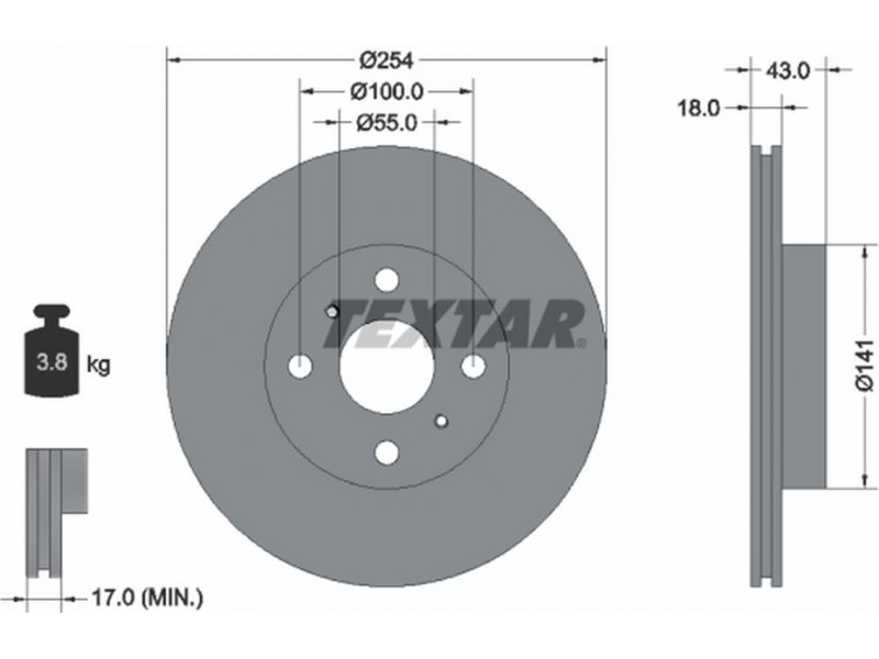Criteries : Βάρος [kg] 3,8, Διάμετρος κέντρωσης [mm] 55, Διάμετρος κύκλου οπής [mm] 100, Διάμετρος οπής μπουλονιού τροχού [mm] 14,5, Ελάχιστο πάχος [mm] 17, Εξωτερική διάμετρος [mm] 254, Εσωτερική διάμετρος [mm] 131,2, μήκος συσκευασίας [cm] 27,8, Πατρόν τρύπας/αριθμός τρυπών 04/06, Πάχος δισκόπλακας [mm] 18, πλάτος συσκευασίας [cm] 27,8, Συμπληρωματικό προϊόν/ πληροφορίες 2 χωρίς μπουλόνια στερέωσης τροχού, Συμπληρωματικό προϊόν/ πληροφορίες 2 χωρίς πλήμνη, Συμπληρωματικό προϊόν/ πληροφορίες 2 χωρίς ρουλεμάν τροχού, Τύπος δισκόφρενων εσωτερικά αεριζόμενο, Υψος [mm] 43, ύψος συσκευασίας [cm] 10,5