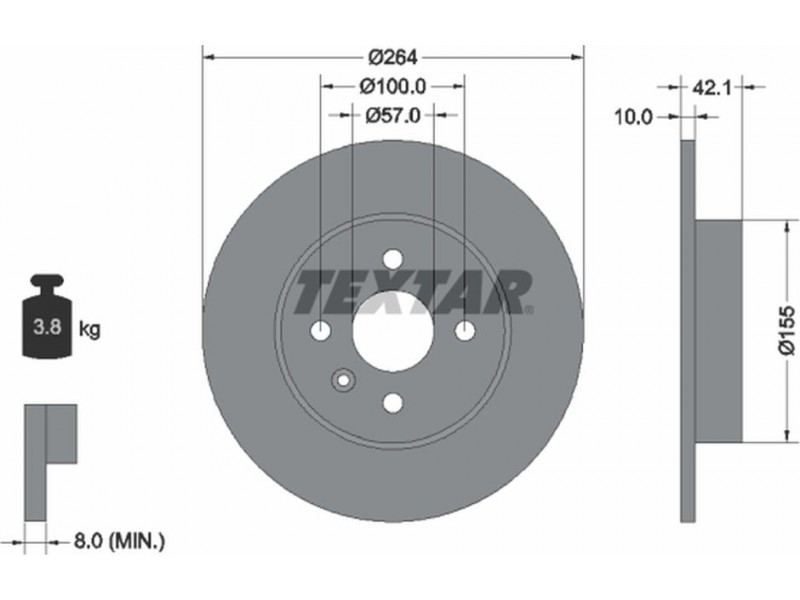 Criteries : Βάρος [kg] 3,8, Διάμετρος κέντρωσης [mm] 57, Διάμετρος κύκλου οπής [mm] 100, Διάμετρος οπής μπουλονιού τροχού [mm] 14,2, Ελάχιστο πάχος [mm] 8, Εξωτερική διάμετρος [mm] 264, Επιφάνεια με επίστρωση, Εσωτερική διάμετρος [mm] 144,9, μήκος συσκευασίας [cm] 27,8, Πατρόν τρύπας/αριθμός τρυπών 04/05, Πάχος δισκόπλακας [mm] 10, πλάτος συσκευασίας [cm] 27,8, Συμπληρωματικό προϊόν/ πληροφορίες 2 χωρίς μπουλόνια στερέωσης τροχού, Συμπληρωματικό προϊόν/ πληροφορίες 2 χωρίς πλήμνη, Συμπληρωματικό προϊόν/ πληροφορίες 2 χωρίς ρουλεμάν τροχού, Τύπος δισκόφρενων πλήρες, Υψος [mm] 42,1, ύψος συσκευασίας [cm] 10,5