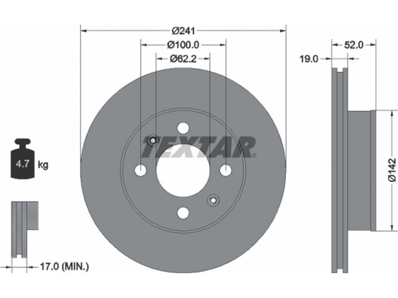 Criteries : Βάρος [kg] 4,7, Διάμετρος κέντρωσης [mm] 62,2, Διάμετρος κύκλου οπής [mm] 100, Διάμετρος οπής μπουλονιού τροχού [mm] 12,7, Ελάχιστο πάχος [mm] 17, Εξωτερική διάμετρος [mm] 241, Επιφάνεια με επίστρωση, Εσωτερική διάμετρος [mm] 125,6, μήκος συσκευασίας [cm] 26,3, Πατρόν τρύπας/αριθμός τρυπών 04/06, Πάχος δισκόπλακας [mm] 19, πλάτος συσκευασίας [cm] 26,3, Συμπληρωματικό προϊόν/ πληροφορίες 2 χωρίς μπουλόνια στερέωσης τροχού, Συμπληρωματικό προϊόν/ πληροφορίες 2 χωρίς πλήμνη, Συμπληρωματικό προϊόν/ πληροφορίες 2 χωρίς ρουλεμάν τροχού, Τύπος δισκόφρενων εσωτερικά αεριζόμενο, Υψος [mm] 52, ύψος συσκευασίας [cm] 13,5