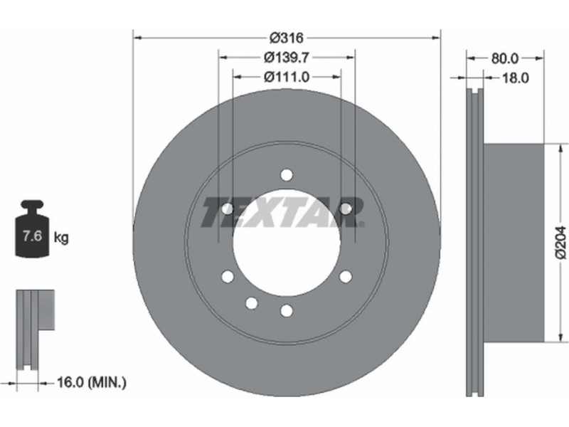 Criteries : Βάρος [kg] 7,6, Διάμετρος κέντρωσης [mm] 111, Διάμετρος κύκλου οπής [mm] 139,7, Διάμετρος οπής μπουλονιού τροχού [mm] 12,8, Ελάχιστο πάχος [mm] 16, Εξωτερική διάμετρος [mm] 316, Εσωτερική διάμετρος [mm] 189,2, μήκος συσκευασίας [cm] 32,8, Πατρόν τρύπας/αριθμός τρυπών 06/07, Πάχος δισκόπλακας [mm] 18, πλάτος συσκευασίας [cm] 32,8, Συμπληρωματικό προϊόν/ πληροφορίες 2 χωρίς μπουλόνια στερέωσης τροχού, Συμπληρωματικό προϊόν/ πληροφορίες 2 χωρίς πλήμνη, Συμπληρωματικό προϊόν/ πληροφορίες 2 χωρίς ρουλεμάν τροχού, Τύπος δισκόφρενων εσωτερικά αεριζόμενο, Υψος [mm] 80, ύψος συσκευασίας [cm] 17,9