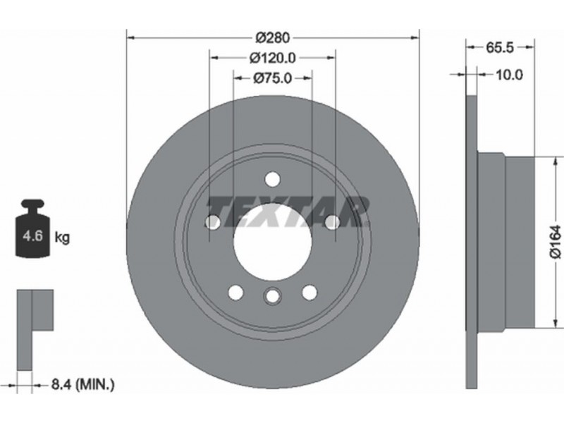 Criteries : Βάρος [kg] 4,6, Διάμετρος κέντρωσης [mm] 75, Διάμετρος κύκλου οπής [mm] 120, Διάμετρος οπής μπουλονιού τροχού [mm] 14,7, Ελάχιστο πάχος [mm] 8,4, Εξωτερική διάμετρος [mm] 280, Επιφάνεια με επίστρωση, Εσωτερική διάμετρος [mm] 160,8, μήκος συσκευασίας [cm] 29,3, Πατρόν τρύπας/αριθμός τρυπών 05/06, Πάχος δισκόπλακας [mm] 10, πλάτος συσκευασίας [cm] 29,3, Συμπληρωματικό προϊόν/ πληροφορίες 2 χωρίς μπουλόνια στερέωσης τροχού, Συμπληρωματικό προϊόν/ πληροφορίες 2 χωρίς πλήμνη, Συμπληρωματικό προϊόν/ πληροφορίες 2 χωρίς ρουλεμάν τροχού, Τύπος δισκόφρενων πλήρες, Υψος [mm] 65,5, ύψος συσκευασίας [cm] 16,5