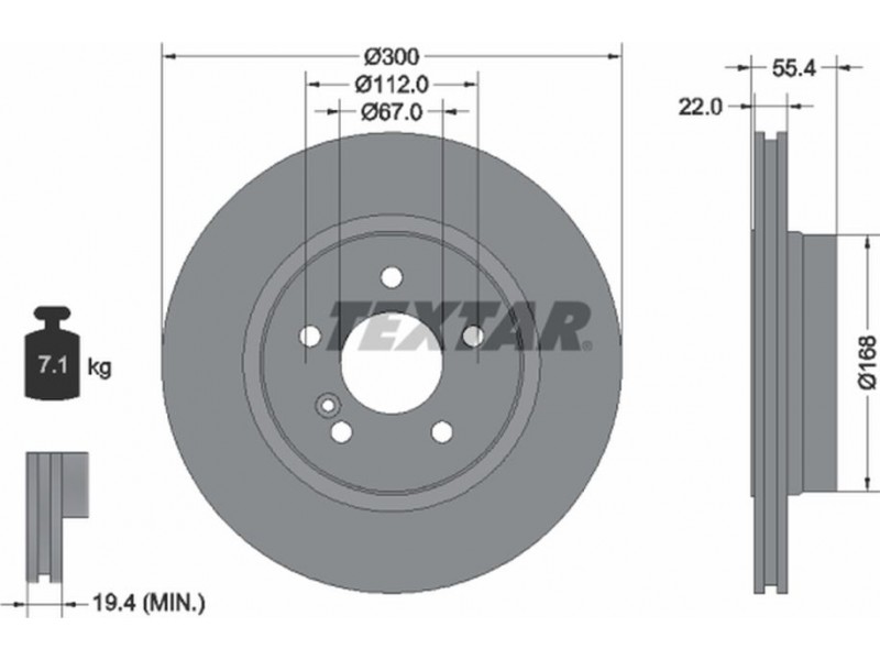 Criteries : Βάρος [kg] 7,1, Διάμετρος κέντρωσης [mm] 67, Διάμετρος κύκλου οπής [mm] 112, Διάμετρος οπής μπουλονιού τροχού [mm] 13,2, Ελάχιστο πάχος [mm] 19,4, Εξωτερική διάμετρος [mm] 300, Επιφάνεια με επίστρωση, Εσωτερική διάμετρος [mm] 164, μήκος συσκευασίας [cm] 31,3, Πατρόν τρύπας/αριθμός τρυπών 05/06, Πάχος δισκόπλακας [mm] 22, πλάτος συσκευασίας [cm] 31,3, Συμπληρωματικό προϊόν/ πληροφορίες 2 χωρίς μπουλόνια στερέωσης τροχού, Συμπληρωματικό προϊόν/ πληροφορίες 2 χωρίς πλήμνη, Συμπληρωματικό προϊόν/ πληροφορίες 2 χωρίς ρουλεμάν τροχού, Τύπος δισκόφρενων εσωτερικά αεριζόμενο, Υψος [mm] 55,4, ύψος συσκευασίας [cm] 14