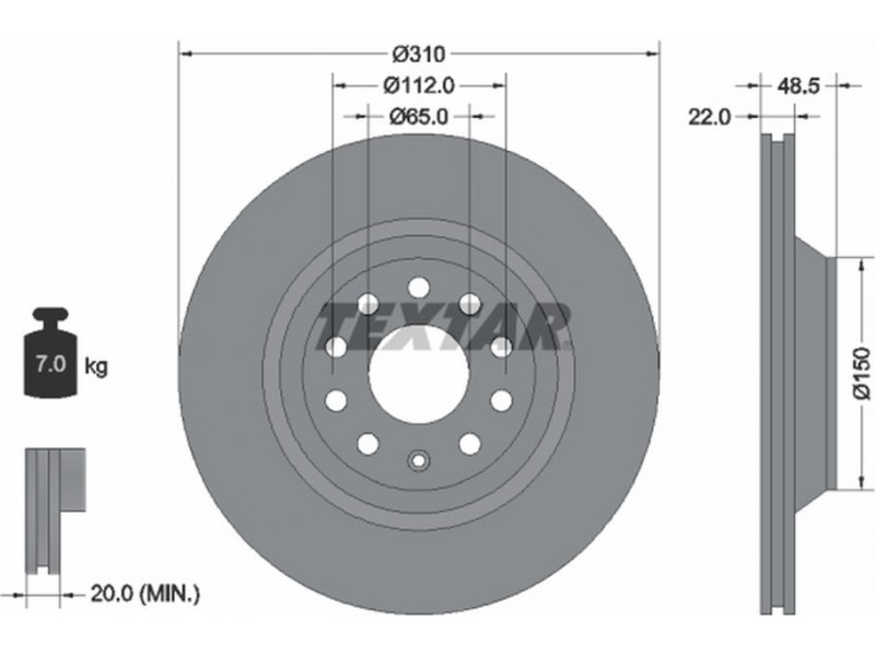 Criteries : Βάρος [kg] 7, Διάμετρος κέντρωσης [mm] 65, Διάμετρος κύκλου οπής [mm] 112, Διάμετρος οπής μπουλονιού τροχού [mm] 15,3, Ελάχιστο πάχος [mm] 20, Εξωτερική διάμετρος [mm] 310, Επιφάνεια με επίστρωση, Εσωτερική διάμετρος [mm] 169,4, μήκος συσκευασίας [cm] 32,8, Πατρόν τρύπας/αριθμός τρυπών 05/10, Πάχος δισκόπλακας [mm] 22, πλάτος συσκευασίας [cm] 32,8, Συμπληρωματικό προϊόν/ πληροφορίες 2 χωρίς μπουλόνια στερέωσης τροχού, Συμπληρωματικό προϊόν/ πληροφορίες 2 χωρίς πλήμνη, Συμπληρωματικό προϊόν/ πληροφορίες 2 χωρίς ρουλεμάν τροχού, Τύπος δισκόφρενων εξωτερικά αεριζόμενο, Υψος [mm] 48,5, ύψος συσκευασίας [cm] 12,5