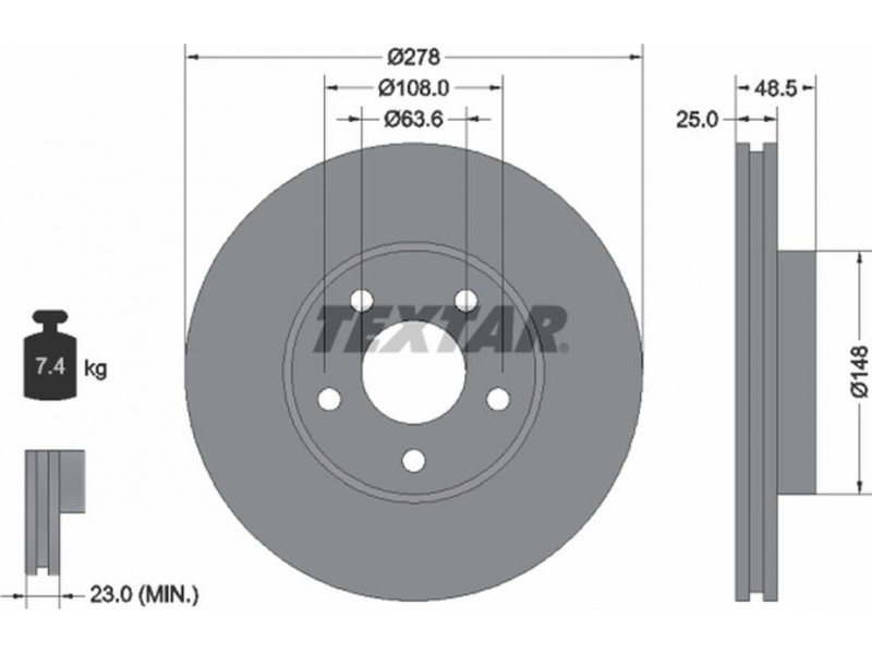 Criteries : Βάρος [kg] 7,4, Διάμετρος κέντρωσης [mm] 63,6, Διάμετρος κύκλου οπής [mm] 108, Διάμετρος οπής μπουλονιού τροχού [mm] 13,8, Ελάχιστο πάχος [mm] 23, Εξωτερική διάμετρος [mm] 278, Επεξεργασία υψηλής ανθράκωσης, Επιφάνεια με επίστρωση, Εσωτερική διάμετρος [mm] 140, μήκος συσκευασίας [cm] 30,8, Πατρόν τρύπας/αριθμός τρυπών 05/05, Πάχος δισκόπλακας [mm] 25, πλάτος συσκευασίας [cm] 30,8, Συμπληρωματικό προϊόν/ πληροφορίες 2 χωρίς μπουλόνια στερέωσης τροχού, Συμπληρωματικό προϊόν/ πληροφορίες 2 χωρίς πλήμνη, Συμπληρωματικό προϊόν/ πληροφορίες 2 χωρίς ρουλεμάν τροχού, Τύπος δισκόφρενων εσωτερικά αεριζόμενο, Υψος [mm] 48,5, ύψος συσκευασίας [cm] 12,7