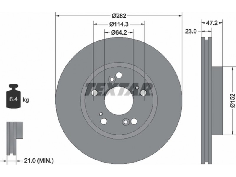 Criteries : Βάρος [kg] 6,4, Διάμετρος κέντρωσης [mm] 64,2, Διάμετρος κύκλου οπής [mm] 114,3, Διάμετρος οπής μπουλονιού τροχού [mm] 12,7, Ελάχιστο πάχος [mm] 21, Εξωτερική διάμετρος [mm] 282, Επιφάνεια με επίστρωση, Εσωτερική διάμετρος [mm] 141,2, μήκος συσκευασίας [cm] 30,8, Πατρόν τρύπας/αριθμός τρυπών 05/09, Πάχος δισκόπλακας [mm] 23, πλάτος συσκευασίας [cm] 30,8, Συμπληρωματικό προϊόν/ πληροφορίες 2 χωρίς μπουλόνια στερέωσης τροχού, Συμπληρωματικό προϊόν/ πληροφορίες 2 χωρίς πλήμνη, Συμπληρωματικό προϊόν/ πληροφορίες 2 χωρίς ρουλεμάν τροχού, Τύπος δισκόφρενων εσωτερικά αεριζόμενο, Υψος [mm] 47,2, ύψος συσκευασίας [cm] 12,7