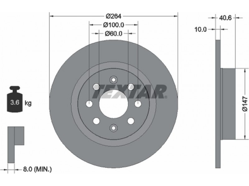 Criteries : Βάρος [kg] 3,6, Διάμετρος κέντρωσης [mm] 60, Διάμετρος κύκλου οπής [mm] 100, Διάμετρος οπής μπουλονιού τροχού [mm] 14,6, Ελάχιστο πάχος [mm] 8, Εξωτερική διάμετρος [mm] 264, Επιφάνεια με επίστρωση, Εσωτερική διάμετρος [mm] 136,7, μήκος συσκευασίας [cm] 27,8, Πατρόν τρύπας/αριθμός τρυπών 04/08, Πάχος δισκόπλακας [mm] 10, πλάτος συσκευασίας [cm] 27,8, Συμπληρωματικό προϊόν/ πληροφορίες 2 χωρίς μπουλόνια στερέωσης τροχού, Συμπληρωματικό προϊόν/ πληροφορίες 2 χωρίς πλήμνη, Συμπληρωματικό προϊόν/ πληροφορίες 2 χωρίς ρουλεμάν τροχού, Τύπος δισκόφρενων πλήρες, Υψος [mm] 40,6, ύψος συσκευασίας [cm] 10,5