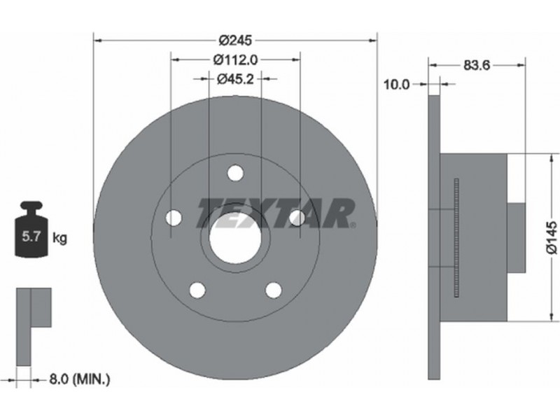 Criteries : Αριθμός δοντιών, δακτύλιος ABS 45, Βάρος [kg] 5,7, Διάμετρος κέντρωσης [mm] 45,2, Διάμετρος κύκλου οπής [mm] 112, Διάμετρος οπής μπουλονιού τροχού [mm] 14, Ελάχιστο πάχος [mm] 8, Εξωτερική διάμετρος [mm] 245, Επιφάνεια με επίστρωση, Εσωτερική διάμετρος [mm] 135,5, μήκος συσκευασίας [cm] 27,8, Πατρόν τρύπας/αριθμός τρυπών 05/05, Πάχος δισκόπλακας [mm] 10, πλάτος συσκευασίας [cm] 27,8, Συμπληρωματικό προϊόν/ πληροφορίες 2 με δακτύλιο αισθητήρα του ABS, Συμπληρωματικό προϊόν/ πληροφορίες 2 με το μουαγιέ, Συμπληρωματικό προϊόν/ πληροφορίες 2 χωρίς μπουλόνια στερέωσης τροχού, Συμπληρωματικό προϊόν/ πληροφορίες 2 χωρίς ρουλεμάν τροχού, Τύπος δισκόφρενων πλήρες, Υψος [mm] 83,6, ύψος συσκευασίας [cm] 10,5