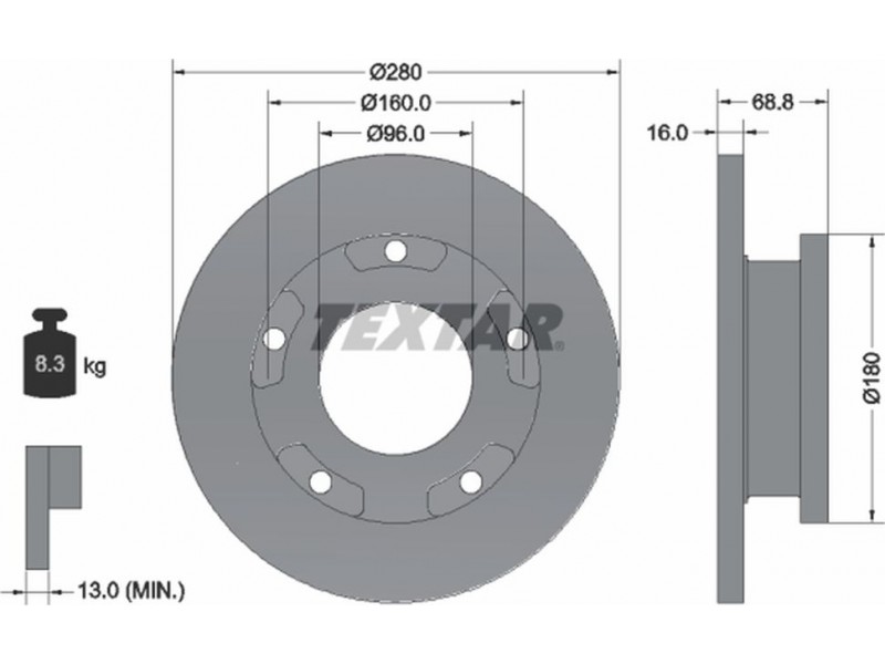 Criteries : Αριθμός δοντιών, δακτύλιος ABS 48, Βάρος [kg] 8,3, Διάμετρος κέντρωσης [mm] 96, Διάμετρος κύκλου οπής [mm] 160, Διάμετρος οπής μπουλονιού τροχού [mm] 10, Ελάχιστο πάχος [mm] 13, Εξωτερική διάμετρος [mm] 280, Επιφάνεια με επίστρωση, Εσωτερική διάμετρος [mm] 1, μήκος συσκευασίας [cm] 30,3, Πατρόν τρύπας/αριθμός τρυπών 05/05, Πάχος δισκόπλακας [mm] 16, πλάτος συσκευασίας [cm] 30,3, Συμπληρωματικό προϊόν/ πληροφορίες 2 με δακτύλιο αισθητήρα του ABS, Συμπληρωματικό προϊόν/ πληροφορίες 2 χωρίς μπουλόνια στερέωσης τροχού, Συμπληρωματικό προϊόν/ πληροφορίες 2 χωρίς πλήμνη, Συμπληρωματικό προϊόν/ πληροφορίες 2 χωρίς ρουλεμάν τροχού, Τύπος δισκόφρενων πλήρες, Υψος [mm] 68,8, ύψος συσκευασίας [cm] 8,6
