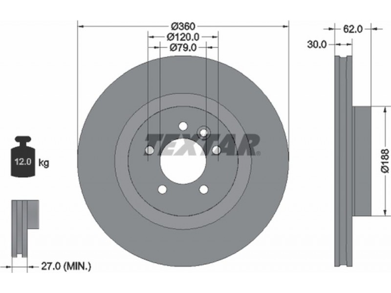 Criteries : Βάρος [kg] 12, Διάμετρος κέντρωσης [mm] 79, Διάμετρος κύκλου οπής [mm] 120, Διάμετρος οπής μπουλονιού τροχού [mm] 15, Ελάχιστο πάχος [mm] 27, Εξωτερική διάμετρος [mm] 360, Επεξεργασία υψηλής ανθράκωσης, Επιφάνεια με επίστρωση, Εσωτερική διάμετρος [mm] 174,8, μήκος συσκευασίας [cm] 37,3, Πατρόν τρύπας/αριθμός τρυπών 05/06, Πάχος δισκόπλακας [mm] 30, πλάτος συσκευασίας [cm] 37,3, Συμπληρωματικό προϊόν/ πληροφορίες 2 χωρίς μπουλόνια στερέωσης τροχού, Συμπληρωματικό προϊόν/ πληροφορίες 2 χωρίς πλήμνη, Συμπληρωματικό προϊόν/ πληροφορίες 2 χωρίς ρουλεμάν τροχού, Τύπος δισκόφρενων εσωτερικά αεριζόμενο, Υψος [mm] 62, ύψος συσκευασίας [cm] 10,5