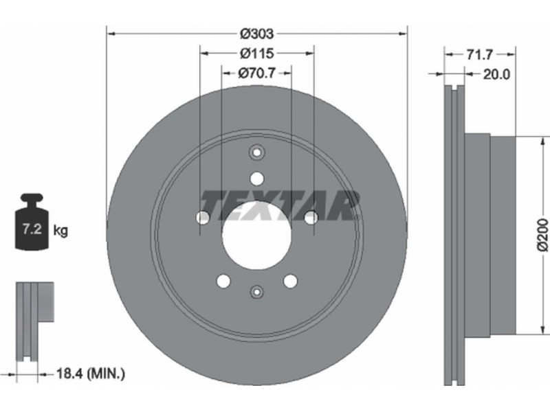 Criteries : Βάρος [kg] 7,2, Διάμετρος κέντρωσης [mm] 70,7, Διάμετρος κύκλου οπής [mm] 115, Διάμετρος οπής μπουλονιού τροχού [mm] 12,7, Ελάχιστο πάχος [mm] 18,4, Εξωτερική διάμετρος [mm] 303, Επιφάνεια με επίστρωση, Εσωτερική διάμετρος [mm] 190, μήκος συσκευασίας [cm] 32,8, Πατρόν τρύπας/αριθμός τρυπών 05/07, Πάχος δισκόπλακας [mm] 20, πλάτος συσκευασίας [cm] 32,8, Συμπληρωματικό προϊόν/ πληροφορίες 2 χωρίς μπουλόνια στερέωσης τροχού, Συμπληρωματικό προϊόν/ πληροφορίες 2 χωρίς πλήμνη, Συμπληρωματικό προϊόν/ πληροφορίες 2 χωρίς ρουλεμάν τροχού, Τύπος δισκόφρενων εσωτερικά αεριζόμενο, Υψος [mm] 71,7, ύψος συσκευασίας [cm] 17,9