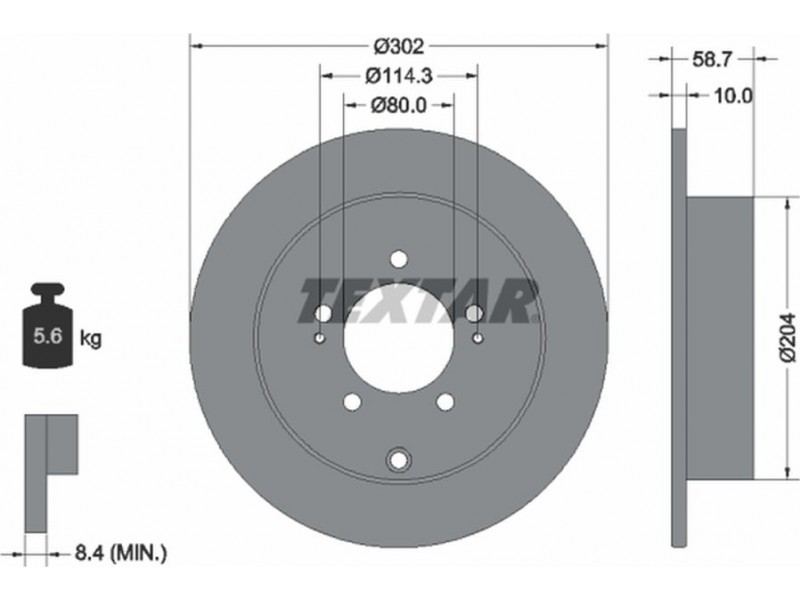 Criteries : Βάρος [kg] 5,6, Διάμετρος κέντρωσης [mm] 80, Διάμετρος κύκλου οπής [mm] 114,3, Διάμετρος οπής μπουλονιού τροχού [mm] 12,6, Ελάχιστο πάχος [mm] 8,4, Εξωτερική διάμετρος [mm] 302, Επιφάνεια με επίστρωση, Εσωτερική διάμετρος [mm] 190, μήκος συσκευασίας [cm] 31,3, Πατρόν τρύπας/αριθμός τρυπών 05/08, Πάχος δισκόπλακας [mm] 10, πλάτος συσκευασίας [cm] 31,3, Συμπληρωματικό προϊόν/ πληροφορίες 2 χωρίς μπουλόνια στερέωσης τροχού, Συμπληρωματικό προϊόν/ πληροφορίες 2 χωρίς πλήμνη, Συμπληρωματικό προϊόν/ πληροφορίες 2 χωρίς ρουλεμάν τροχού, Τύπος δισκόφρενων πλήρες, Υψος [mm] 58,7, ύψος συσκευασίας [cm] 14
