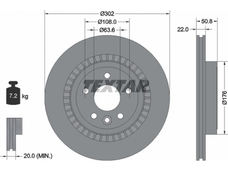 Criteries : Βάρος [kg] 7,2, Διάμετρος κέντρωσης [mm] 63,6, Διάμετρος κύκλου οπής [mm] 108, Διάμετρος οπής μπουλονιού τροχού [mm] 15,8, Ελάχιστο πάχος [mm] 20, Εξωτερική διάμετρος [mm] 302, Επιφάνεια με επίστρωση, Εσωτερική διάμετρος [mm] 165, μήκος συσκευασίας [cm] 32,8, Πατρόν τρύπας/αριθμός τρυπών 05/06, Πάχος δισκόπλακας [mm] 22, πλάτος συσκευασίας [cm] 32,8, Συμπληρωματικό προϊόν/ πληροφορίες 2 χωρίς μπουλόνια στερέωσης τροχού, Συμπληρωματικό προϊόν/ πληροφορίες 2 χωρίς πλήμνη, Συμπληρωματικό προϊόν/ πληροφορίες 2 χωρίς ρουλεμάν τροχού, Τύπος δισκόφρενων εξωτερικά αεριζόμενο, Υψος [mm] 50,8, ύψος συσκευασίας [cm] 12,5