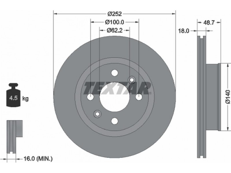 Criteries : Βάρος [kg] 4,5, Διάμετρος κέντρωσης [mm] 62,2, Διάμετρος κύκλου οπής [mm] 100, Διάμετρος οπής μπουλονιού τροχού [mm] 12,6, Ελάχιστο πάχος [mm] 16, Εξωτερική διάμετρος [mm] 252, Επιφάνεια με επίστρωση, Εσωτερική διάμετρος [mm] 126, μήκος συσκευασίας [cm] 27,8, Πατρόν τρύπας/αριθμός τρυπών 04/06, Πάχος δισκόπλακας [mm] 18, πλάτος συσκευασίας [cm] 27,8, Συμπληρωματικό προϊόν/ πληροφορίες 2 χωρίς μπουλόνια στερέωσης τροχού, Συμπληρωματικό προϊόν/ πληροφορίες 2 χωρίς πλήμνη, Συμπληρωματικό προϊόν/ πληροφορίες 2 χωρίς ρουλεμάν τροχού, Τύπος δισκόφρενων εσωτερικά αεριζόμενο, Υψος [mm] 48,7, ύψος συσκευασίας [cm] 12,2