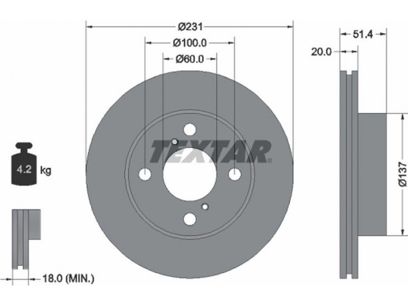 Criteries : Βάρος [kg] 4,2, Διάμετρος κέντρωσης [mm] 60, Διάμετρος κύκλου οπής [mm] 100, Διάμετρος οπής μπουλονιού τροχού [mm] 12,6, Ελάχιστο πάχος [mm] 18, Εξωτερική διάμετρος [mm] 231, Εσωτερική διάμετρος [mm] 125, μήκος συσκευασίας [cm] 26,3, Πατρόν τρύπας/αριθμός τρυπών 04/06, Πάχος δισκόπλακας [mm] 20, πλάτος συσκευασίας [cm] 26,3, Συμπληρωματικό προϊόν/ πληροφορίες 2 χωρίς μπουλόνια στερέωσης τροχού, Συμπληρωματικό προϊόν/ πληροφορίες 2 χωρίς πλήμνη, Συμπληρωματικό προϊόν/ πληροφορίες 2 χωρίς ρουλεμάν τροχού, Τύπος δισκόφρενων εσωτερικά αεριζόμενο, Υψος [mm] 51,4, ύψος συσκευασίας [cm] 13,5