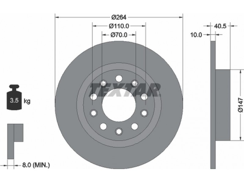 Criteries : Βάρος [kg] 3,5, Διάμετρος κέντρωσης [mm] 70, Διάμετρος κύκλου οπής [mm] 110, Διάμετρος οπής μπουλονιού τροχού [mm] 14,1, Ελάχιστο πάχος [mm] 8, Εξωτερική διάμετρος [mm] 264, Επιφάνεια με επίστρωση, Εσωτερική διάμετρος [mm] 136,8, μήκος συσκευασίας [cm] 27,8, Πατρόν τρύπας/αριθμός τρυπών 05/10, Πάχος δισκόπλακας [mm] 10, πλάτος συσκευασίας [cm] 27,8, Συμπληρωματικό προϊόν/ πληροφορίες 2 χωρίς μπουλόνια στερέωσης τροχού, Συμπληρωματικό προϊόν/ πληροφορίες 2 χωρίς πλήμνη, Συμπληρωματικό προϊόν/ πληροφορίες 2 χωρίς ρουλεμάν τροχού, Τύπος δισκόφρενων πλήρες, Υψος [mm] 40,5, ύψος συσκευασίας [cm] 10,5