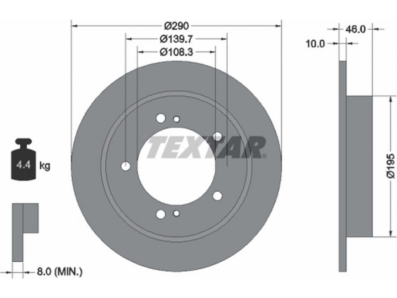 Criteries : Βάρος [kg] 4,4, Διάμετρος κέντρωσης [mm] 108,3, Διάμετρος κύκλου οπής [mm] 139,7, Διάμετρος οπής μπουλονιού τροχού [mm] 12,8, Ελάχιστο πάχος [mm] 8, Εξωτερική διάμετρος [mm] 290, Εσωτερική διάμετρος [mm] 183, μήκος συσκευασίας [cm] 30,8, Πατρόν τρύπας/αριθμός τρυπών 05/07, Πάχος δισκόπλακας [mm] 10, πλάτος συσκευασίας [cm] 30,8, Συμπληρωματικό προϊόν/ πληροφορίες 2 χωρίς μπουλόνια στερέωσης τροχού, Συμπληρωματικό προϊόν/ πληροφορίες 2 χωρίς πλήμνη, Συμπληρωματικό προϊόν/ πληροφορίες 2 χωρίς ρουλεμάν τροχού, Τύπος δισκόφρενων πλήρες, Υψος [mm] 46, ύψος συσκευασίας [cm] 12,7