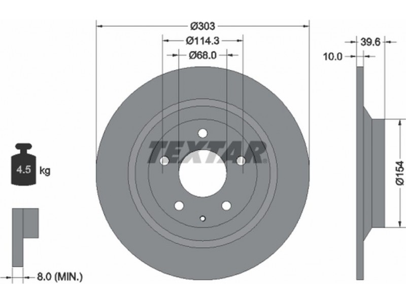 Criteries : Βάρος [kg] 4,5, Διάμετρος κέντρωσης [mm] 68, Διάμετρος κύκλου οπής [mm] 114,3, Διάμετρος οπής μπουλονιού τροχού [mm] 13,1, Ελάχιστο πάχος [mm] 8, Εξωτερική διάμετρος [mm] 303, Επιφάνεια με επίστρωση, Εσωτερική διάμετρος [mm] 142,9, μήκος συσκευασίας [cm] 31,3, Πατρόν τρύπας/αριθμός τρυπών 05/06, Πάχος δισκόπλακας [mm] 10, πλάτος συσκευασίας [cm] 31,3, Συμπληρωματικό προϊόν/ πληροφορίες 2 χωρίς μπουλόνια στερέωσης τροχού, Συμπληρωματικό προϊόν/ πληροφορίες 2 χωρίς πλήμνη, Συμπληρωματικό προϊόν/ πληροφορίες 2 χωρίς ρουλεμάν τροχού, Τύπος δισκόφρενων πλήρες, Υψος [mm] 39,6, ύψος συσκευασίας [cm] 10