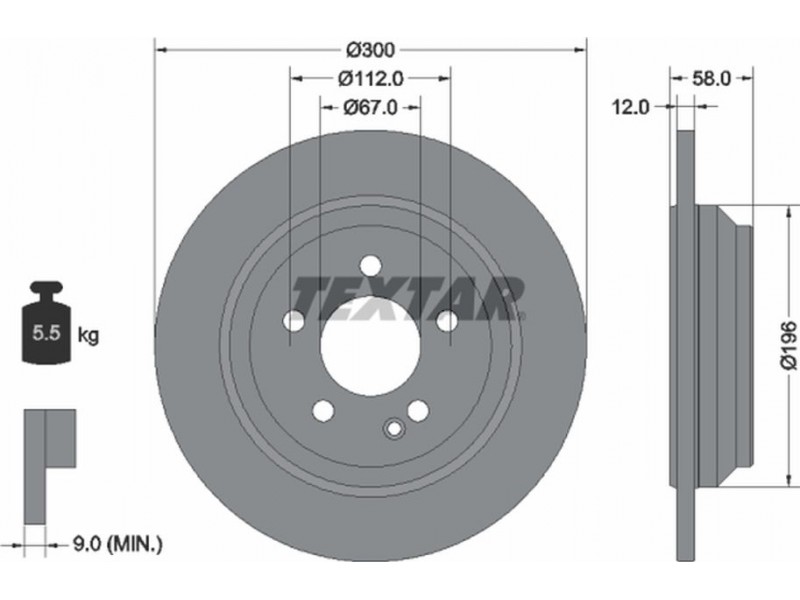 Criteries : Βάρος [kg] 5,5, Διάμετρος κέντρωσης [mm] 67, Διάμετρος κύκλου οπής [mm] 112, Διάμετρος οπής μπουλονιού τροχού [mm] 15, Ελάχιστο πάχος [mm] 9, Εξωτερική διάμετρος [mm] 300, Επιφάνεια με επίστρωση, Εσωτερική διάμετρος [mm] 186, μήκος συσκευασίας [cm] 31,3, Πατρόν τρύπας/αριθμός τρυπών 05/06, Πάχος δισκόπλακας [mm] 12, πλάτος συσκευασίας [cm] 31,3, Συμπληρωματικό προϊόν/ πληροφορίες 2 χωρίς μπουλόνια στερέωσης τροχού, Συμπληρωματικό προϊόν/ πληροφορίες 2 χωρίς πλήμνη, Συμπληρωματικό προϊόν/ πληροφορίες 2 χωρίς ρουλεμάν τροχού, Τύπος δισκόφρενων πλήρες, Υψος [mm] 58, ύψος συσκευασίας [cm] 14