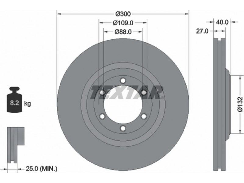 Criteries : Βάρος [kg] 8,2, Διάμετρος κέντρωσης [mm] 88, Διάμετρος κύκλου οπής [mm] 109, Διάμετρος οπής μπουλονιού τροχού [mm] 12, Ελάχιστο πάχος [mm] 25, Εξωτερική διάμετρος [mm] 300, Επιφάνεια με επίστρωση, Εσωτερική διάμετρος [mm] 1, μήκος συσκευασίας [cm] 31,3, Πατρόν τρύπας/αριθμός τρυπών 06/06, Πάχος δισκόπλακας [mm] 27, πλάτος συσκευασίας [cm] 31,3, Συμπληρωματικό προϊόν/ πληροφορίες 2 χωρίς μπουλόνια στερέωσης τροχού, Συμπληρωματικό προϊόν/ πληροφορίες 2 χωρίς πλήμνη, Συμπληρωματικό προϊόν/ πληροφορίες 2 χωρίς ρουλεμάν τροχού, Τύπος δισκόφρενων εσωτερικά αεριζόμενο, Υψος [mm] 40, ύψος συσκευασίας [cm] 10