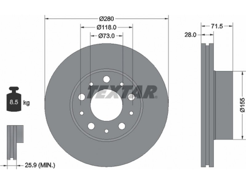 Criteries : Βάρος [kg] 8,5, Διάμετρος κέντρωσης [mm] 73, Διάμετρος κύκλου οπής [mm] 118, Διάμετρος οπής μπουλονιού τροχού [mm] 15,7, Ελάχιστο πάχος [mm] 25,9, Εξωτερική διάμετρος [mm] 280, Επιφάνεια με επίστρωση, Εσωτερική διάμετρος [mm] 142, μήκος συσκευασίας [cm] 29,3, Πατρόν τρύπας/αριθμός τρυπών 05/10, Πάχος δισκόπλακας [mm] 28, πλάτος συσκευασίας [cm] 29,3, Συμπληρωματικό προϊόν/ πληροφορίες 2 χωρίς μπουλόνια στερέωσης τροχού, Συμπληρωματικό προϊόν/ πληροφορίες 2 χωρίς πλήμνη, Συμπληρωματικό προϊόν/ πληροφορίες 2 χωρίς ρουλεμάν τροχού, Τύπος δισκόφρενων εσωτερικά αεριζόμενο, Υψος [mm] 71,5, ύψος συσκευασίας [cm] 16,5