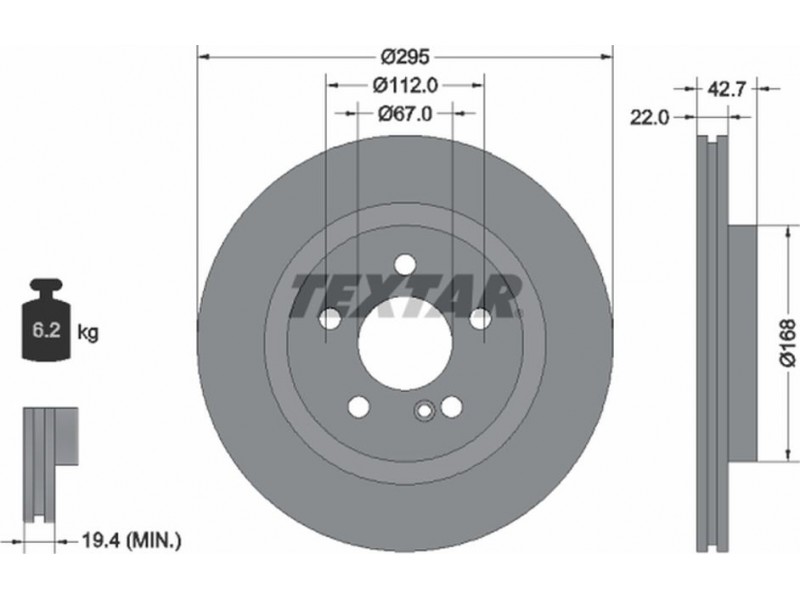 Criteries : Βάρος [kg] 6,2, Διάμετρος κέντρωσης [mm] 67, Διάμετρος κύκλου οπής [mm] 112, Διάμετρος οπής μπουλονιού τροχού [mm] 15,3, Ελάχιστο πάχος [mm] 19,4, Εξωτερική διάμετρος [mm] 295, Επιφάνεια με επίστρωση, Εσωτερική διάμετρος [mm] 157, μήκος συσκευασίας [cm] 30,8, Πατρόν τρύπας/αριθμός τρυπών 05/06, Πάχος δισκόπλακας [mm] 22, πλάτος συσκευασίας [cm] 30,8, Συμπληρωματικό προϊόν/ πληροφορίες 2 χωρίς μπουλόνια στερέωσης τροχού, Συμπληρωματικό προϊόν/ πληροφορίες 2 χωρίς πλήμνη, Συμπληρωματικό προϊόν/ πληροφορίες 2 χωρίς ρουλεμάν τροχού, Τύπος δισκόφρενων εσωτερικά αεριζόμενο, Υψος [mm] 42,7, ύψος συσκευασίας [cm] 12,7