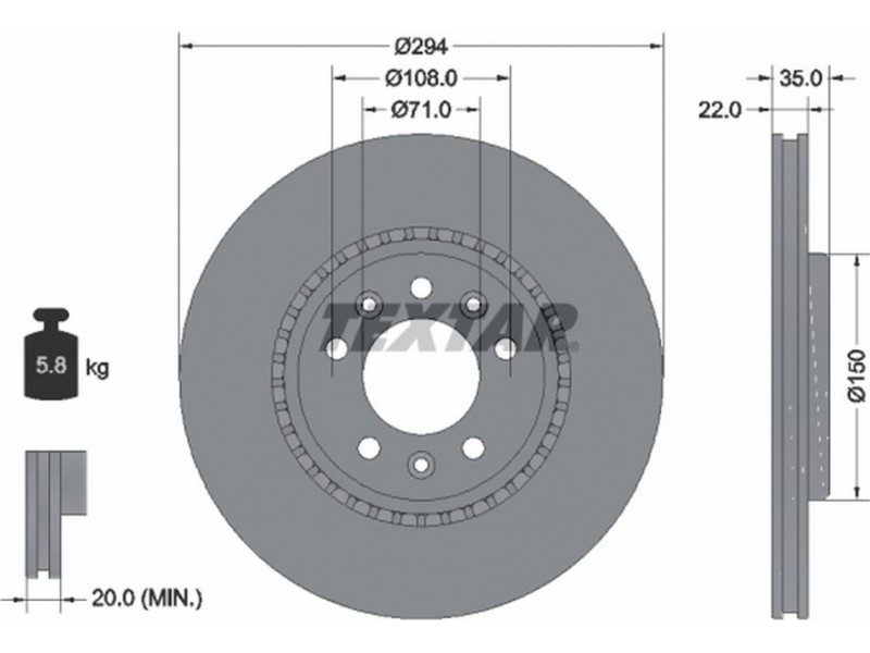 Criteries : Βάρος [kg] 5,8, Διάμετρος κέντρωσης [mm] 71, Διάμετρος κύκλου οπής [mm] 108, Διάμετρος οπής μπουλονιού τροχού [mm] 13,3, Ελάχιστο πάχος [mm] 20, Εξωτερική διάμετρος [mm] 294, Επιφάνεια με επίστρωση, Εσωτερική διάμετρος [mm] 140, μήκος συσκευασίας [cm] 30,3, Πατρόν τρύπας/αριθμός τρυπών 05/08, Πάχος δισκόπλακας [mm] 22, πλάτος συσκευασίας [cm] 30,3, Συμπληρωματικό προϊόν/ πληροφορίες 2 χωρίς μπουλόνια στερέωσης τροχού, Συμπληρωματικό προϊόν/ πληροφορίες 2 χωρίς πλήμνη, Συμπληρωματικό προϊόν/ πληροφορίες 2 χωρίς ρουλεμάν τροχού, Τύπος δισκόφρενων εξωτερικά αεριζόμενο, Υψος [mm] 35, ύψος συσκευασίας [cm] 8,6