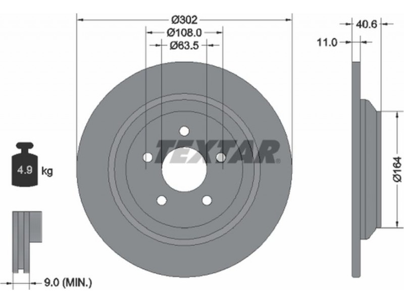 Criteries : Βάρος [kg] 4,9, Διάμετρος κέντρωσης [mm] 63,5, Διάμετρος κύκλου οπής [mm] 108, Διάμετρος οπής μπουλονιού τροχού [mm] 13,6, Ελάχιστο πάχος [mm] 9, Εξωτερική διάμετρος [mm] 302, Επιφάνεια με επίστρωση, Εσωτερική διάμετρος [mm] 185,5, μήκος συσκευασίας [cm] 31,3, Πατρόν τρύπας/αριθμός τρυπών 05/05, Πάχος δισκόπλακας [mm] 11, πλάτος συσκευασίας [cm] 31,3, Συμπληρωματικό προϊόν/ πληροφορίες 2 χωρίς μπουλόνια στερέωσης τροχού, Συμπληρωματικό προϊόν/ πληροφορίες 2 χωρίς πλήμνη, Συμπληρωματικό προϊόν/ πληροφορίες 2 χωρίς ρουλεμάν τροχού, Τύπος δισκόφρενων πλήρες, Υψος [mm] 40,6, ύψος συσκευασίας [cm] 10