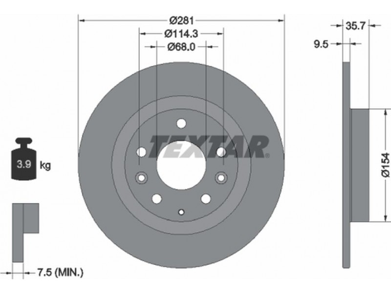 Criteries : Βάρος [kg] 3,9, Διάμετρος κέντρωσης [mm] 68, Διάμετρος κύκλου οπής [mm] 114,3, Διάμετρος οπής μπουλονιού τροχού [mm] 13,3, Ελάχιστο πάχος [mm] 7,5, Εξωτερική διάμετρος [mm] 281, Επιφάνεια με επίστρωση, Εσωτερική διάμετρος [mm] 143, μήκος συσκευασίας [cm] 29,3, Πατρόν τρύπας/αριθμός τρυπών 05/08, Πάχος δισκόπλακας [mm] 9,5, πλάτος συσκευασίας [cm] 29,3, Συμπληρωματικό προϊόν/ πληροφορίες 2 χωρίς μπουλόνια στερέωσης τροχού, Συμπληρωματικό προϊόν/ πληροφορίες 2 χωρίς πλήμνη, Συμπληρωματικό προϊόν/ πληροφορίες 2 χωρίς ρουλεμάν τροχού, Τύπος δισκόφρενων πλήρες, Υψος [mm] 35,7, ύψος συσκευασίας [cm] 10,5