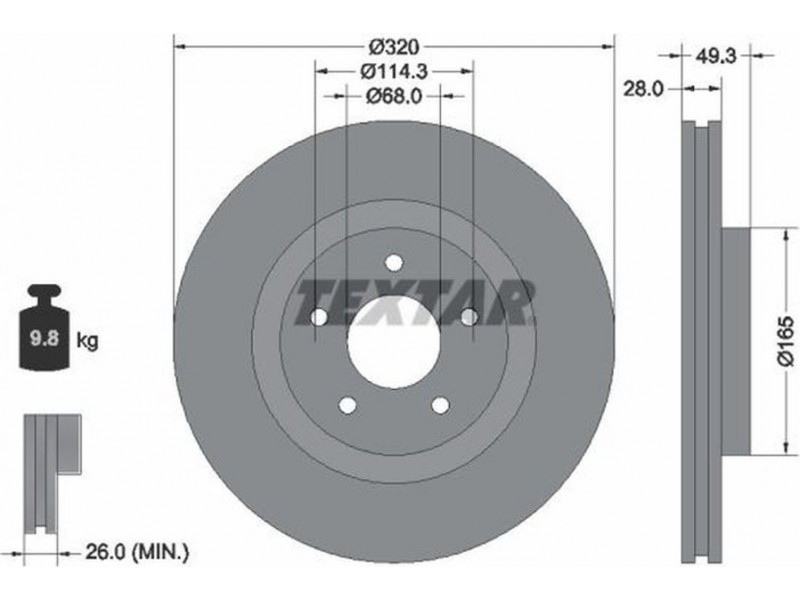 Criteries : Βάρος [kg] 9,8, Διάμετρος κέντρωσης [mm] 68, Διάμετρος κύκλου οπής [mm] 114,3, Διάμετρος οπής μπουλονιού τροχού [mm] 12,8, Ελάχιστο πάχος [mm] 26, Εξωτερική διάμετρος [mm] 320, Επιφάνεια με επίστρωση, Εσωτερική διάμετρος [mm] 153,7, μήκος συσκευασίας [cm] 32,8, Πατρόν τρύπας/αριθμός τρυπών 05/05, Πάχος δισκόπλακας [mm] 28, πλάτος συσκευασίας [cm] 32,8, Συμπληρωματικό προϊόν/ πληροφορίες 2 χωρίς μπουλόνια στερέωσης τροχού, Συμπληρωματικό προϊόν/ πληροφορίες 2 χωρίς πλήμνη, Συμπληρωματικό προϊόν/ πληροφορίες 2 χωρίς ρουλεμάν τροχού, Τύπος δισκόφρενων εσωτερικά αεριζόμενο, Υψος [mm] 49,3, ύψος συσκευασίας [cm] 7,5