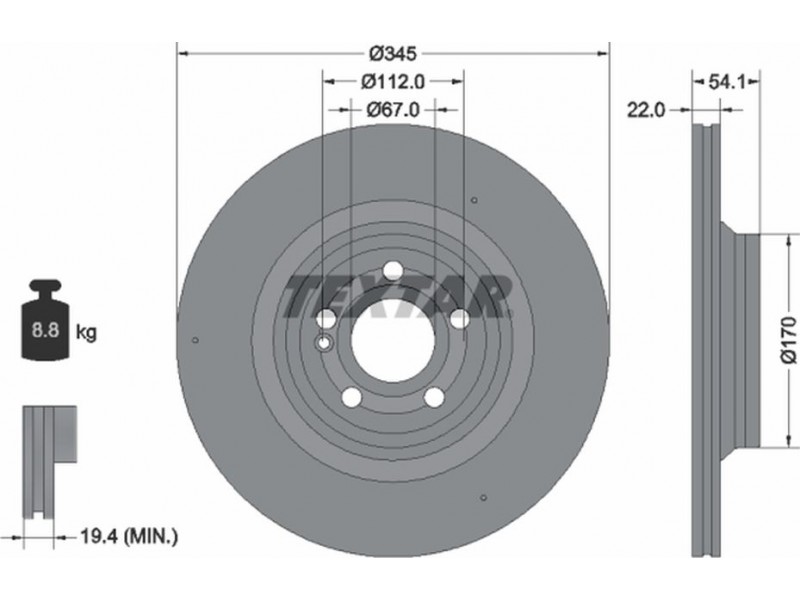 Criteries : Βάρος [kg] 8,8, Διάμετρος κέντρωσης [mm] 67, Διάμετρος κύκλου οπής [mm] 112, Διάμετρος οπής μπουλονιού τροχού [mm] 16,3, Ελάχιστο πάχος [mm] 19,4, Εξωτερική διάμετρος [mm] 345, Επεξεργασία υψηλής ανθράκωσης, Επιφάνεια με επίστρωση, Εσωτερική διάμετρος [mm] 178, μήκος συσκευασίας [cm] 35,8, Πατρόν τρύπας/αριθμός τρυπών 05/06, Πάχος δισκόπλακας [mm] 22, πλάτος συσκευασίας [cm] 35,8, Συμπληρωματικό προϊόν/ πληροφορίες 2 χωρίς μπουλόνια στερέωσης τροχού, Συμπληρωματικό προϊόν/ πληροφορίες 2 χωρίς πλήμνη, Συμπληρωματικό προϊόν/ πληροφορίες 2 χωρίς ρουλεμάν τροχού, Τύπος δισκόφρενων εσωτερικά αεριζόμενο, Υψος [mm] 54,1, ύψος συσκευασίας [cm] 13,5