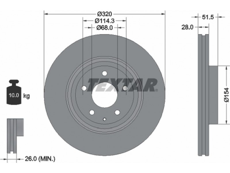 Criteries : Βάρος [kg] 10, Διάμετρος κέντρωσης [mm] 68, Διάμετρος κύκλου οπής [mm] 114,3, Διάμετρος οπής μπουλονιού τροχού [mm] 13,3, Ελάχιστο πάχος [mm] 26, Εξωτερική διάμετρος [mm] 320, Επιφάνεια με επίστρωση, Εσωτερική διάμετρος [mm] 142,8, μήκος συσκευασίας [cm] 32,8, Πατρόν τρύπας/αριθμός τρυπών 05/06, Πάχος δισκόπλακας [mm] 28, πλάτος συσκευασίας [cm] 32,8, Συμπληρωματικό προϊόν/ πληροφορίες 2 χωρίς μπουλόνια στερέωσης τροχού, Συμπληρωματικό προϊόν/ πληροφορίες 2 χωρίς πλήμνη, Συμπληρωματικό προϊόν/ πληροφορίες 2 χωρίς ρουλεμάν τροχού, Τύπος δισκόφρενων εξωτερικά αεριζόμενο, Υψος [mm] 51,5, ύψος συσκευασίας [cm] 7,5