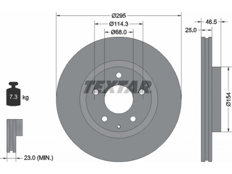 Criteries : Βάρος [kg] 7,3, Διάμετρος κέντρωσης [mm] 68, Διάμετρος κύκλου οπής [mm] 114,3, Διάμετρος οπής μπουλονιού τροχού [mm] 13,3, Ελάχιστο πάχος [mm] 23, Εξωτερική διάμετρος [mm] 295, Επιφάνεια με επίστρωση, Εσωτερική διάμετρος [mm] 142,8, μήκος συσκευασίας [cm] 30,8, Πατρόν τρύπας/αριθμός τρυπών 05/06, Πάχος δισκόπλακας [mm] 25, πλάτος συσκευασίας [cm] 30,8, Συμπληρωματικό προϊόν/ πληροφορίες 2 χωρίς μπουλόνια στερέωσης τροχού, Συμπληρωματικό προϊόν/ πληροφορίες 2 χωρίς πλήμνη, Συμπληρωματικό προϊόν/ πληροφορίες 2 χωρίς ρουλεμάν τροχού, Τύπος δισκόφρενων εσωτερικά αεριζόμενο, Υψος [mm] 46,5, ύψος συσκευασίας [cm] 12,7