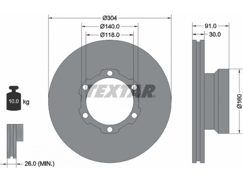 Criteries : Βάρος [kg] 10, Διάμετρος κέντρωσης [mm] 118, Διάμετρος κύκλου οπής [mm] 140, Διάμετρος οπής μπουλονιού τροχού [mm] 12, Ελάχιστο πάχος [mm] 26, Εξωτερική διάμετρος [mm] 304, Εσωτερική διάμετρος [mm] 122,5, μήκος συσκευασίας [cm] 31,7, Πατρόν τρύπας/αριθμός τρυπών 06/06, Πάχος δισκόπλακας [mm] 30, πλάτος συσκευασίας [cm] 31,7, Συμπληρωματικό προϊόν/ πληροφορίες 2 χωρίς μπουλόνια στερέωσης τροχού, Συμπληρωματικό προϊόν/ πληροφορίες 2 χωρίς πλήμνη, Συμπληρωματικό προϊόν/ πληροφορίες 2 χωρίς ρουλεμάν τροχού, Τύπος δισκόφρενων εσωτερικά αεριζόμενο, Υψος [mm] 91, ύψος συσκευασίας [cm] 11