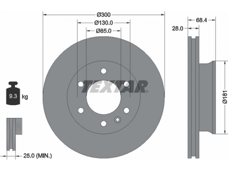 Criteries : Βάρος [kg] 9,3, Διάμετρος κέντρωσης [mm] 85, Διάμετρος κύκλου οπής [mm] 130, Διάμετρος οπής μπουλονιού τροχού [mm] 15,6, Ελάχιστο πάχος [mm] 25, Εξωτερική διάμετρος [mm] 300, Επιφάνεια με επίστρωση, Εσωτερική διάμετρος [mm] 155, μήκος συσκευασίας [cm] 30,8, Πατρόν τρύπας/αριθμός τρυπών 06/07, Πάχος δισκόπλακας [mm] 28, πλάτος συσκευασίας [cm] 30,8, Συμπληρωματικό προϊόν/ πληροφορίες 2 χωρίς μπουλόνια στερέωσης τροχού, Συμπληρωματικό προϊόν/ πληροφορίες 2 χωρίς πλήμνη, Συμπληρωματικό προϊόν/ πληροφορίες 2 χωρίς ρουλεμάν τροχού, Τύπος δισκόφρενων εσωτερικά αεριζόμενο, Υψος [mm] 68,4, ύψος συσκευασίας [cm] 16