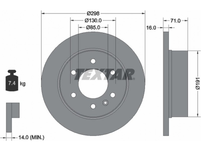 Criteries : Βάρος [kg] 7,4, Διάμετρος κέντρωσης [mm] 85, Διάμετρος κύκλου οπής [mm] 130, Διάμετρος οπής μπουλονιού τροχού [mm] 15, Ελάχιστο πάχος [mm] 14, Εξωτερική διάμετρος [mm] 298, Επιφάνεια με επίστρωση, Εσωτερική διάμετρος [mm] 180, μήκος συσκευασίας [cm] 30,8, Πατρόν τρύπας/αριθμός τρυπών 06/07, Πάχος δισκόπλακας [mm] 16, πλάτος συσκευασίας [cm] 30,8, Συμπληρωματικό προϊόν/ πληροφορίες 2 χωρίς μπουλόνια στερέωσης τροχού, Συμπληρωματικό προϊόν/ πληροφορίες 2 χωρίς πλήμνη, Συμπληρωματικό προϊόν/ πληροφορίες 2 χωρίς ρουλεμάν τροχού, Τύπος δισκόφρενων πλήρες, Υψος [mm] 71, ύψος συσκευασίας [cm] 16