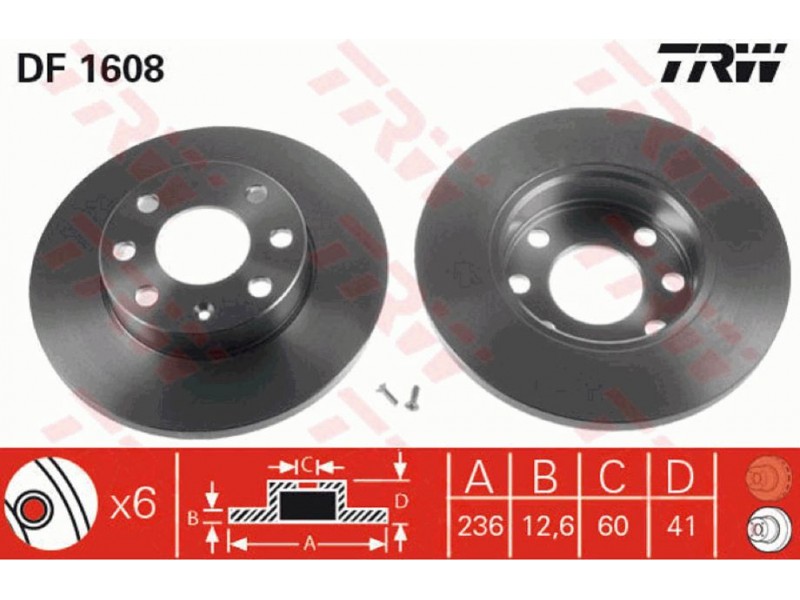 DF1608 ΔΙΣΚΟΠΛΑΚΑ ΕΜΠ.(Φ236) TRW DF1608 - Δισκόπλακα