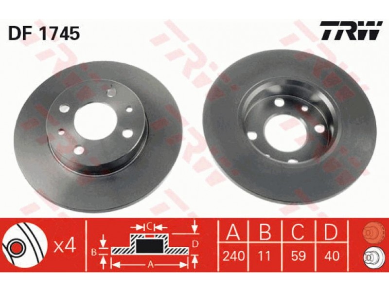 TRWDF1745 ΔΙΣΚΟΠΛΑΚΑ ΕΜΠ.(Φ240) TRW DF1745 - Δισκόπλακα
