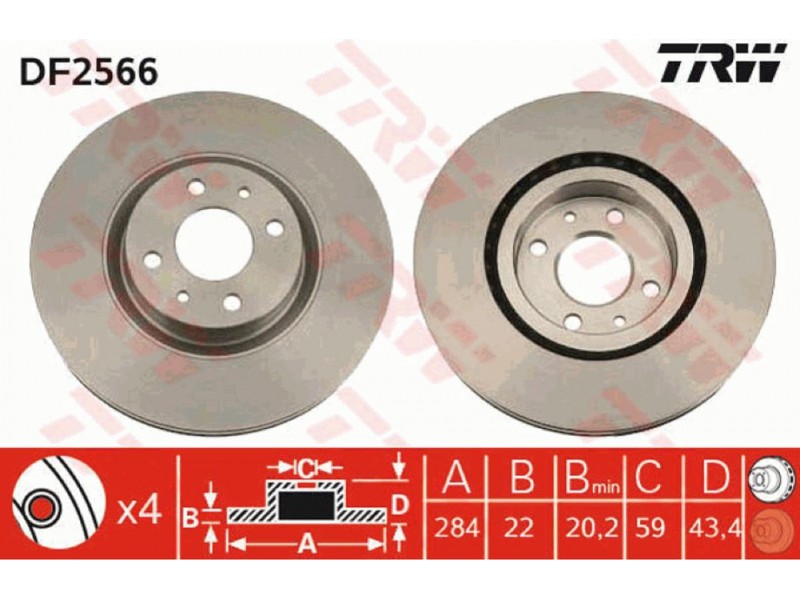 DF2566 ΔΙΣΚΟΠΛΑΚΑ ΕΜΠ.ΑΕΡΙΖ.(Φ284) TRW DF2566 - Δισκόπλακα