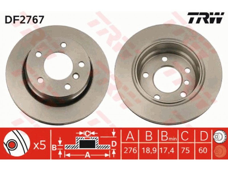 DF2767 ΔΙΣΚΟΠΛΑΚΑ ΟΠ.ΑΕΡΙΖ.(Φ276) TRW DF2767 - Δισκόπλακα