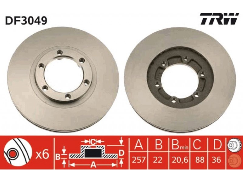 TRWDF3049 ΔΙΣΚΟΠΛΑΚΑ ΕΜΠ.ΑΕΡΙΖ.(Φ257) TRW DF3049 - Δισκόπλακα