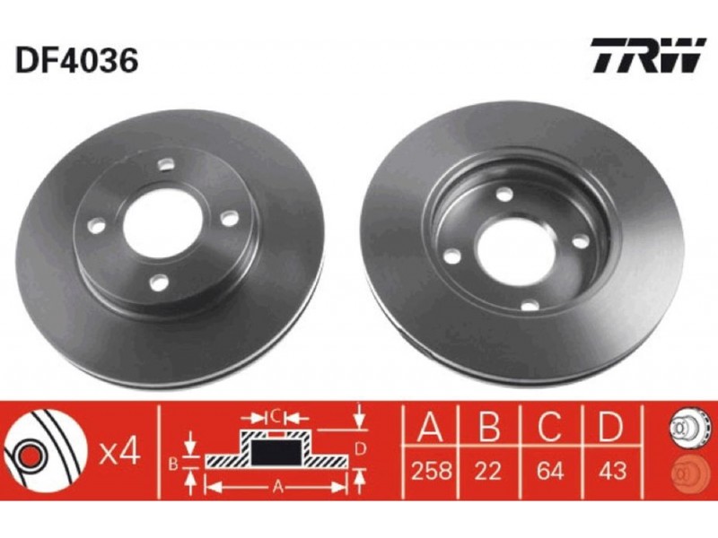 TRWDF4036 ΔΙΣΚΟΠΛΑΚΑ ΕΜΠ.ΑΕΡΙΖ.(Φ258) TRW DF4036 - Δισκόπλακα
