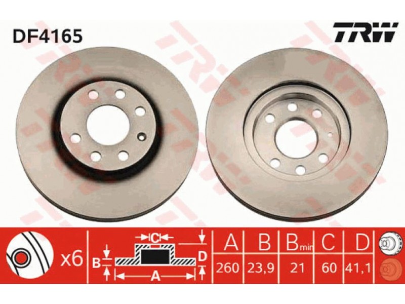 TRWDF4165 ΔΙΣΚΟΠΛΑΚΑ ΕΜΠ.ΑΕΡΙΖ.(Φ260) TRW DF4165 - Δισκόπλακα