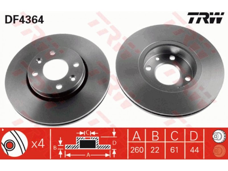 DF4364 ΔΙΣΚΟΠΛΑΚΑ ΕΜΠ.ΑΕΡΙΖ.(Φ260) TRW DF4364 - Δισκόπλακα